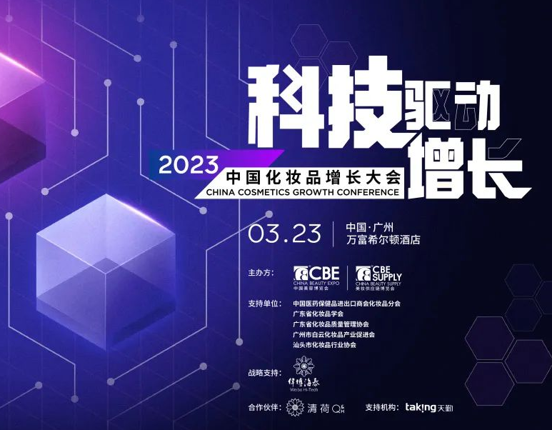 2023中國(guó)化妝品增長(zhǎng)大會(huì),由CBE中國(guó)美容博覽會(huì)和CBE SUPPLY美妝供應(yīng)鏈博覽會(huì)聯(lián)合主辦,中國(guó)醫(yī)藥保健品進(jìn)出口商會(huì)化妝品分會(huì)、廣東省化妝品學(xué)會(huì)、廣東省化妝品質(zhì)量管理協(xié)會(huì)、廣州市白云化妝品產(chǎn)業(yè)促進(jìn)會(huì)和汕頭市化妝品行...